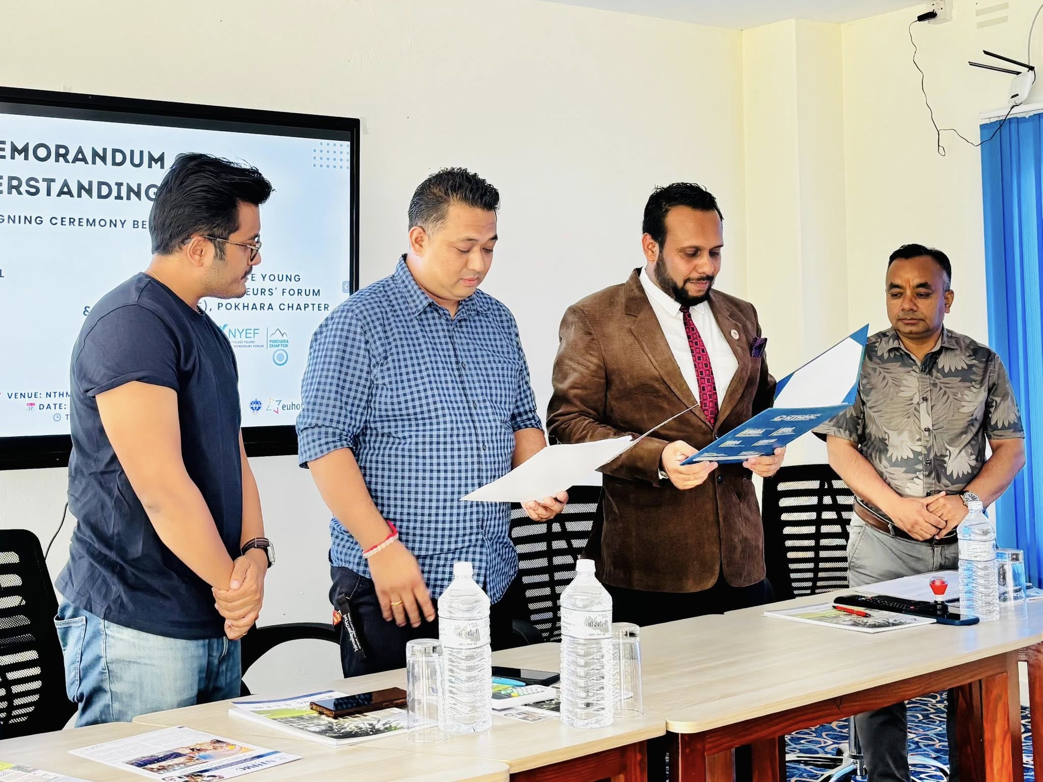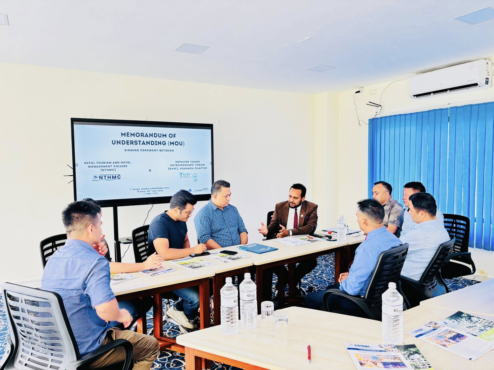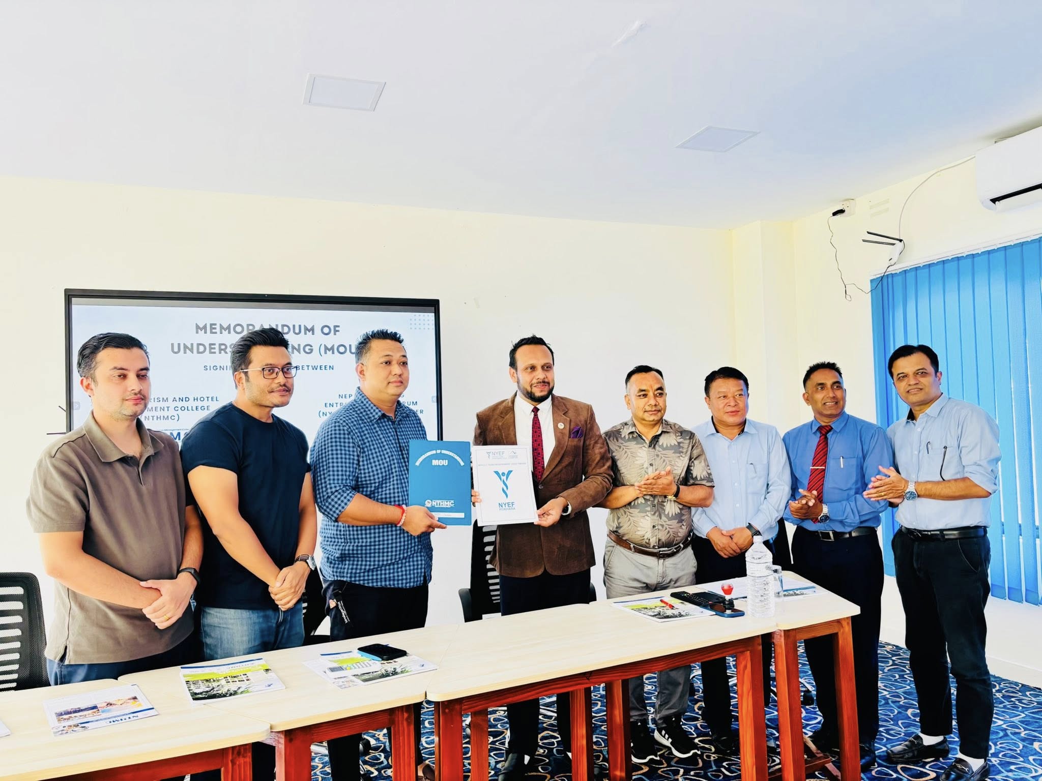 Nepal Tourism and Hotel Management College (NTHMC) has officially signed a Memorandum of Understanding (MoU) with the Nepalese Young Entrepreneurs’ Forum (NYEF), Pokhara Chapter. This collaboration marks a key step toward bridging the gap between academics and the tourism industry. The agreement focuses on sharing academic and industry resources, providing internship and job opportunities, organizing joint programs, and supporting both educational and entrepreneurial growth. This partnership will help create practical learning platforms for students and strengthen industry engagement.