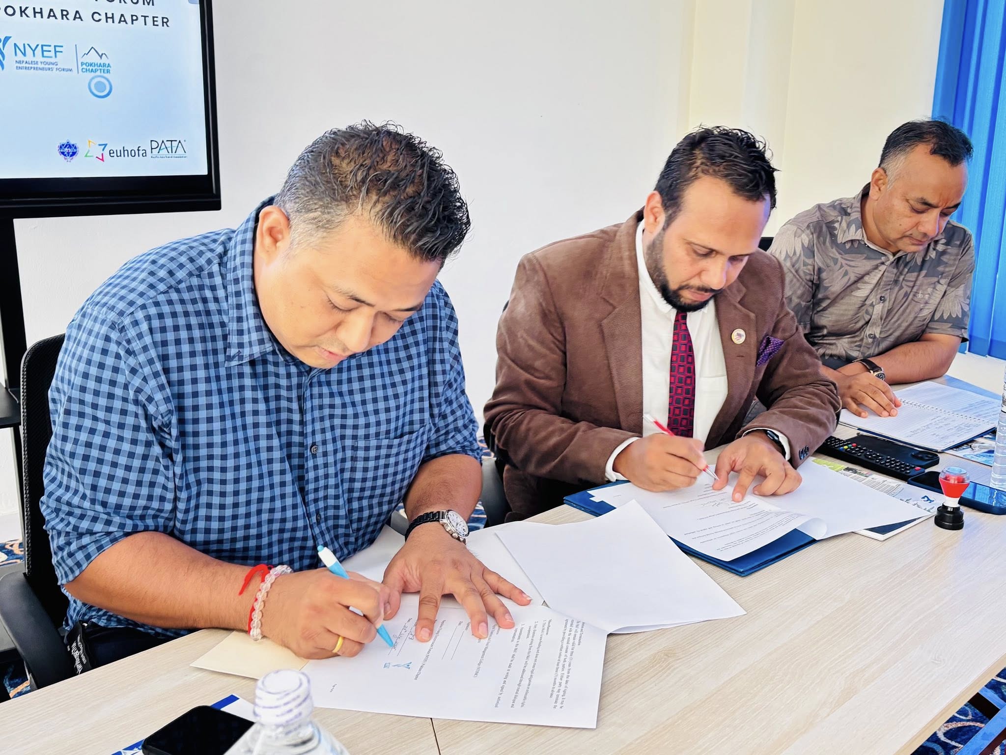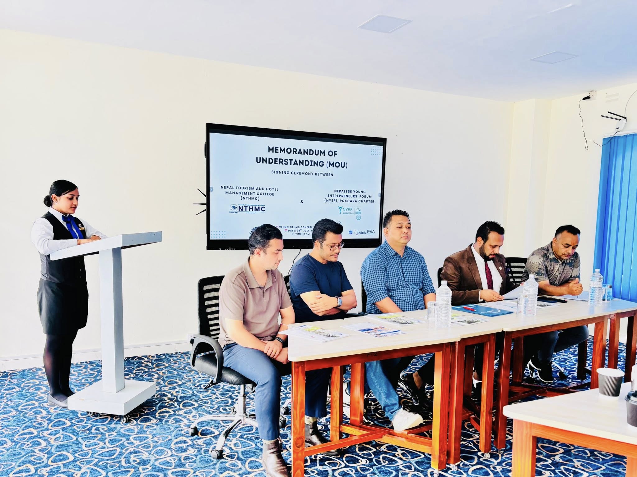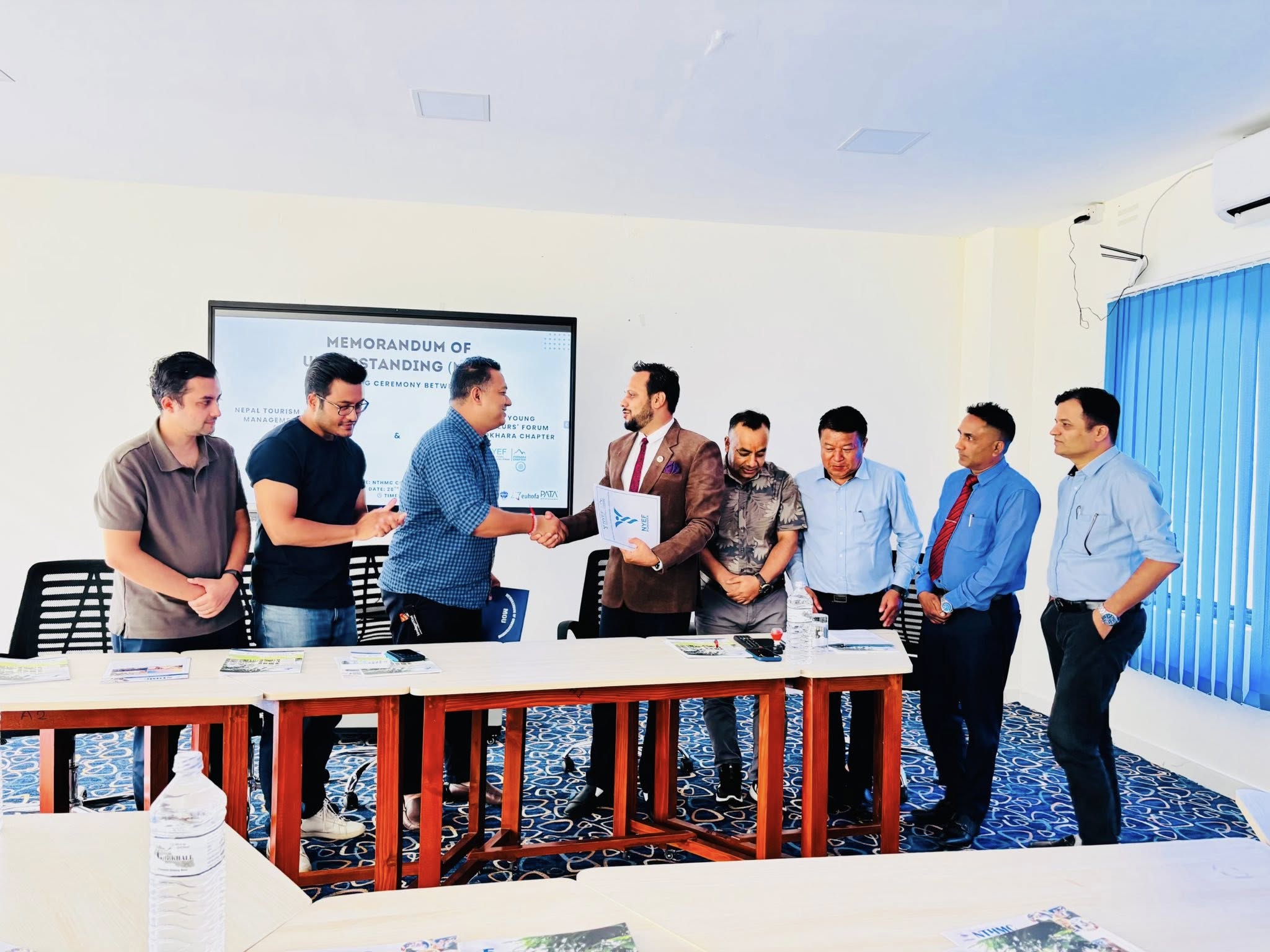 Nepal Tourism and Hotel Management College (NTHMC) has officially signed a Memorandum of Understanding (MoU) with the Nepalese Young Entrepreneurs’ Forum (NYEF), Pokhara Chapter. This collaboration marks a key step toward bridging the gap between academics and the tourism industry. The agreement focuses on sharing academic and industry resources, providing internship and job opportunities, organizing joint programs, and supporting both educational and entrepreneurial growth. This partnership will help create practical learning platforms for students and strengthen industry engagement.