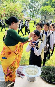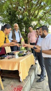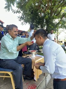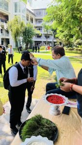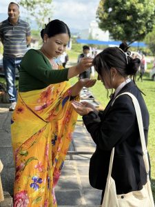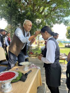 “The Dashain Festival Subhakamana Adan Pradan Karyakram-2082” was gracefully organized by NTHMC College on the 8th of Aswin 2082 at the college premises , Chhinedanda. The event was honored by the presence of the Principal, Vice Principal, coordinators, both teaching and non-teaching staff members & students of Grade 11 & 12. Many presenters shared heartfelt Subhakamana speeches, expressing their good wishes and reflections on the festival’s significance. Participants actively engaged in the traditional rituals of applying Tika on each other’s foreheads and exchanging flowers, symbolizing blessings, unity, and goodwill within the college community. The program commenced at 2:30 pm and concluded at 5:00 pm, ending on a delightful note with the serving of delicious hi tea, fostering a warm and festive atmosphere.