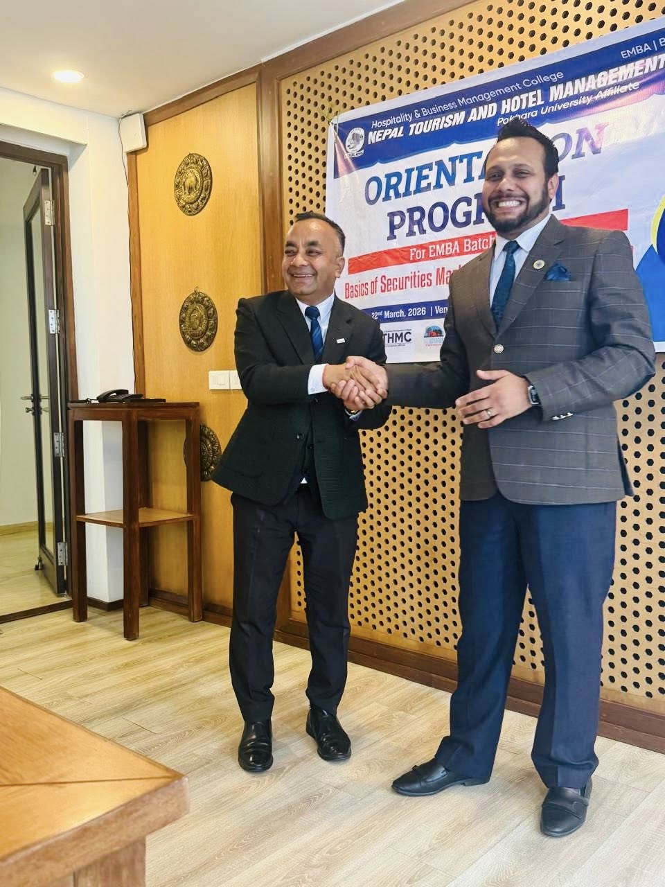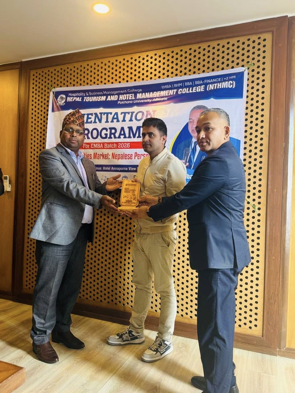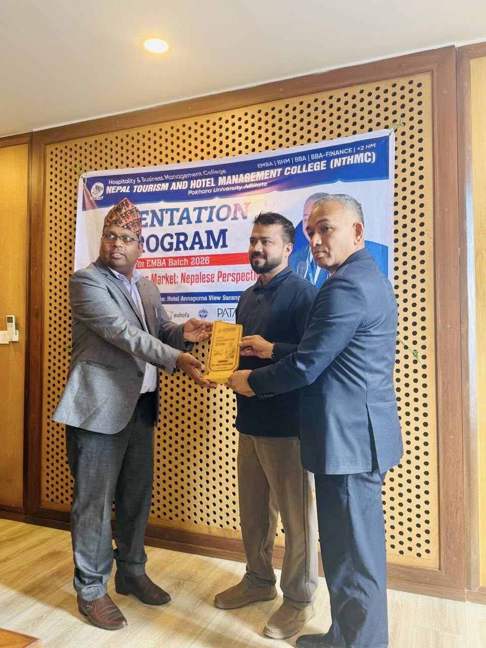 The Executive Masters in Business Administration (EMBA) Orientation Program was successfully held at Annapurna View Sarangkot. The event was honored by Mr. Raju Pandey, Controller of Examinations at Pokhara University, as the Chief Guest, and Dr. Nabaraj Adhikari, Executive Director of the Securities Board of Nepal, as the Keynote Speaker.